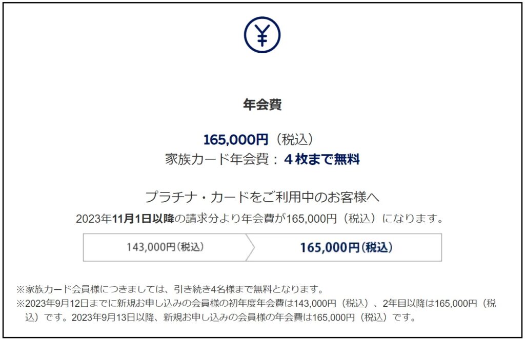 2023年9月13日以降の新規申し込みから年会費が165,000円(税込)に値上げされます。
