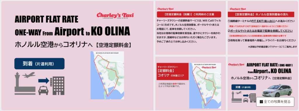 チャーリーズタクシーは、ホノルル空港からアウラニ・ディズニー・リゾート間は、定額で1台78ドルとなっています(2025年6月時点)。