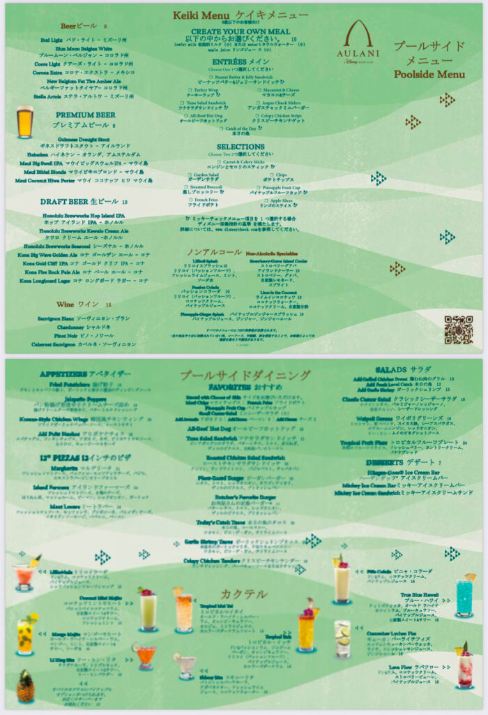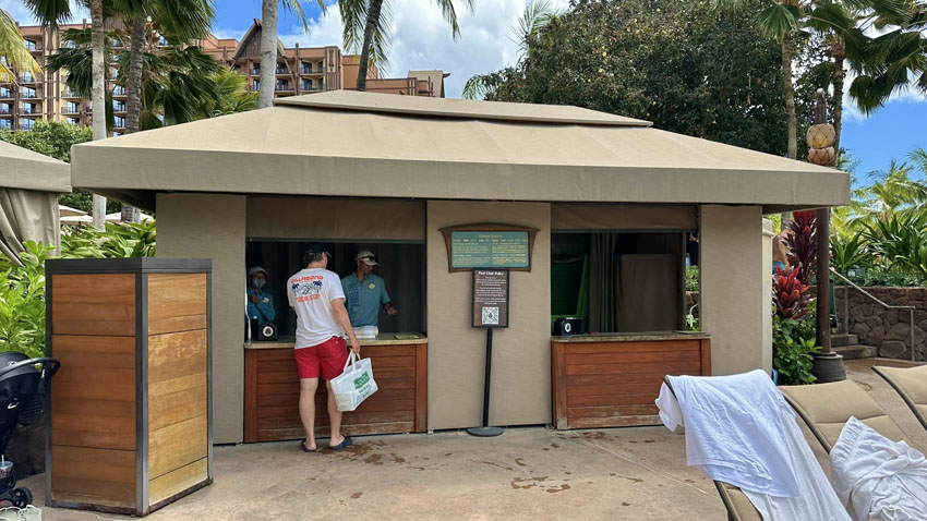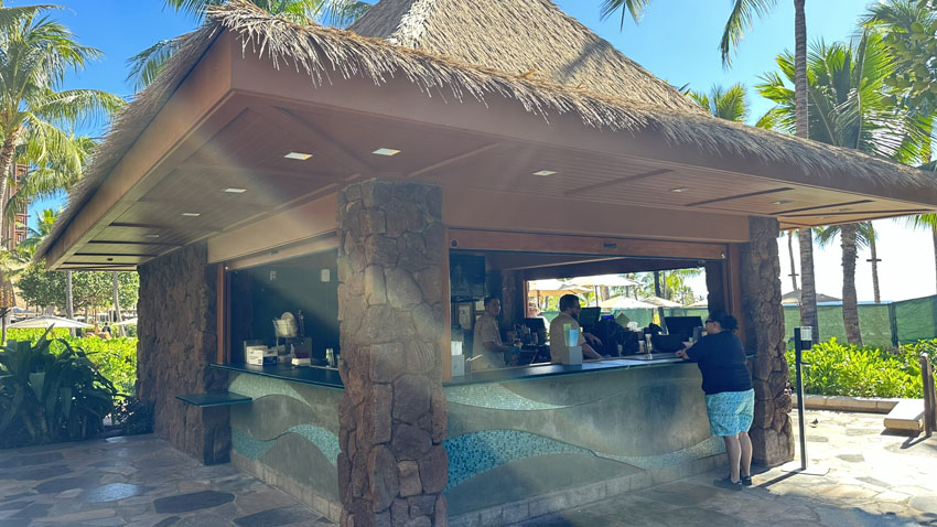 アウラニ・ディズニー・リゾート内にプールサイドにあるカジュアルなショップで、軽食や飲み物、ビーチアイテムを手軽に購入できる便利な場所です。
