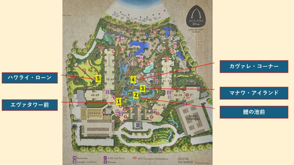ちょっとややこしいので、はじめてアウラニディズニーに行く人は覚えておくと良いと思います
