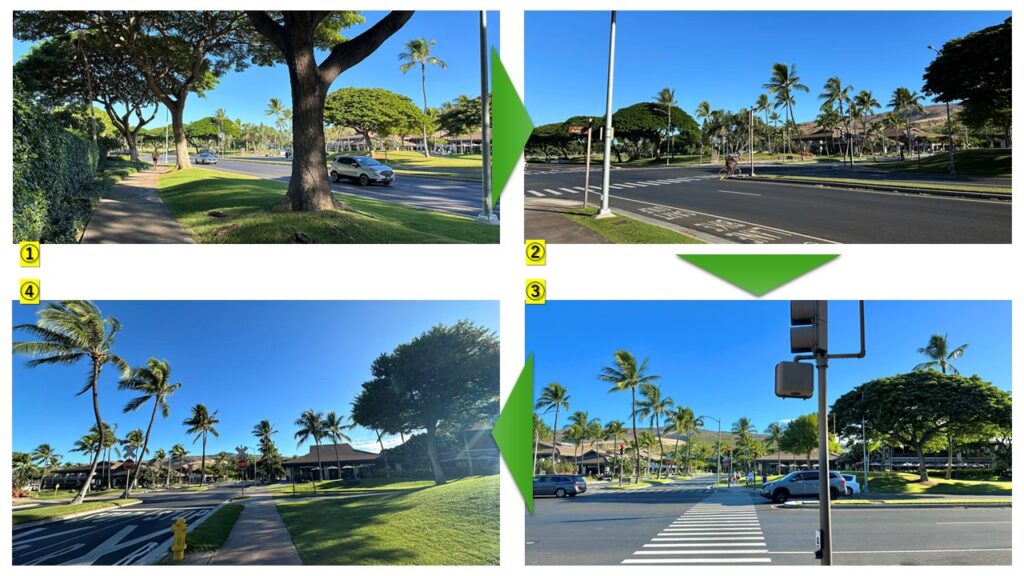 行き方は、上のキャプチャーのとおりで、アウラニディズニーリゾート出て左に方面に歩きます①