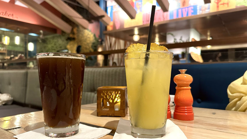 エントラストの横にはフルーツがたっぷり入った、さっぱりウォーター(フリー)があります