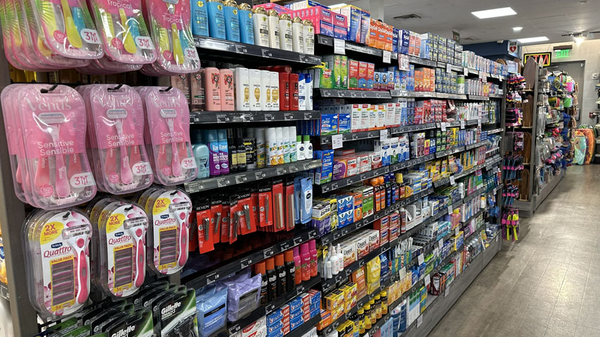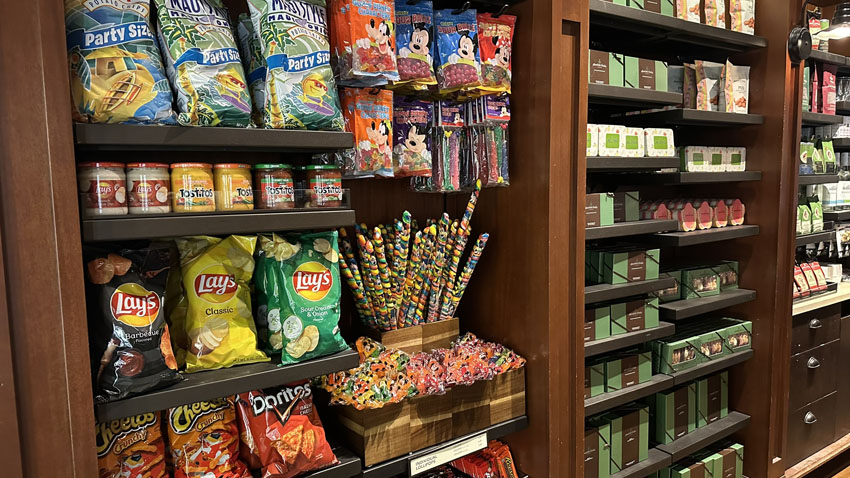 スナック菓子や冷たいドリンク、アイスクリームのほか、水着やサンダル、リゾートで使える小物も販売されています。