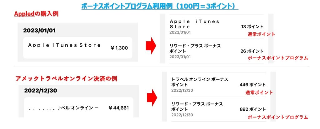※上記はアメックスプラチナカードの例ですが、アメックスゴールドプリファードも同じようにボーナスポイントが加算されます。