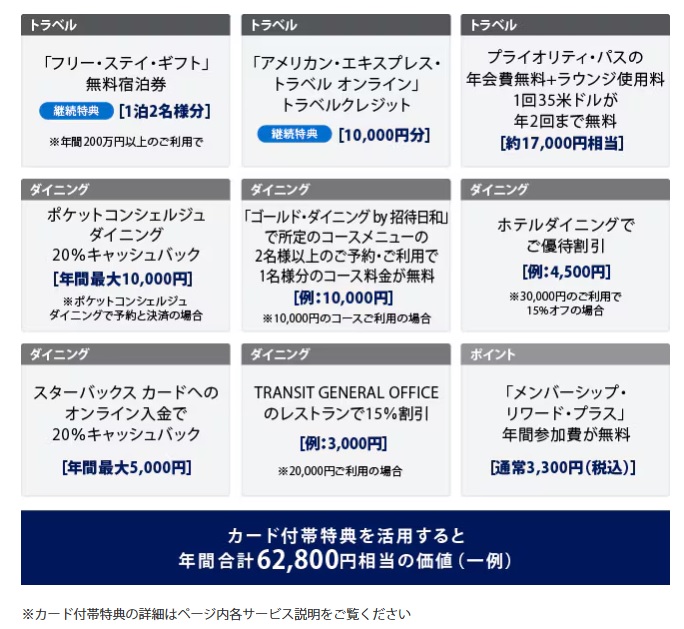 生まれ変わったアメックスゴールドプリファードの主な魅力的な特徴・特典は以下となります。