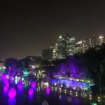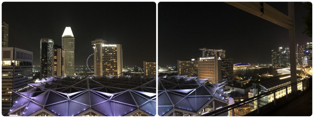 リラックススペースからの景色は、昼間より夜の方が綺麗です。マリーナベイサンズの高層階部分も見えます。
