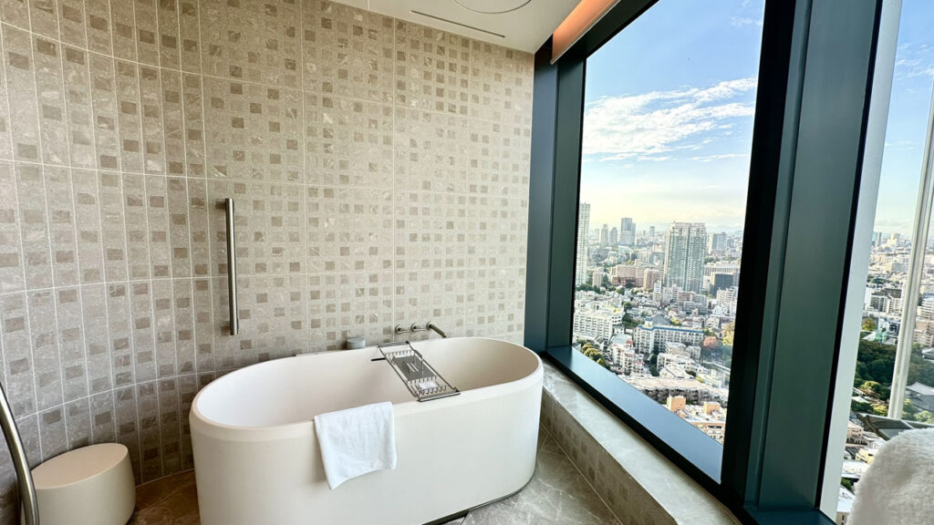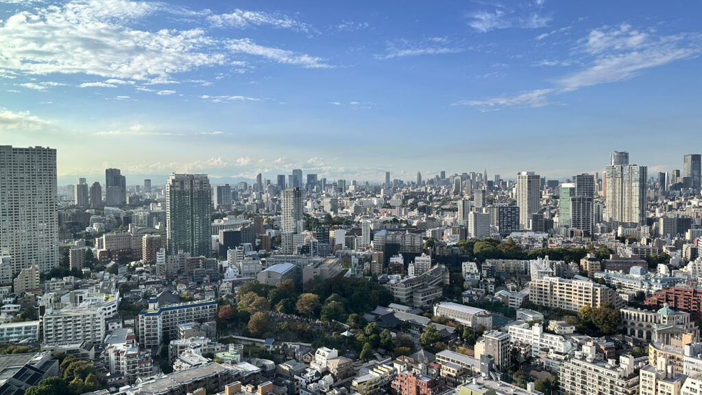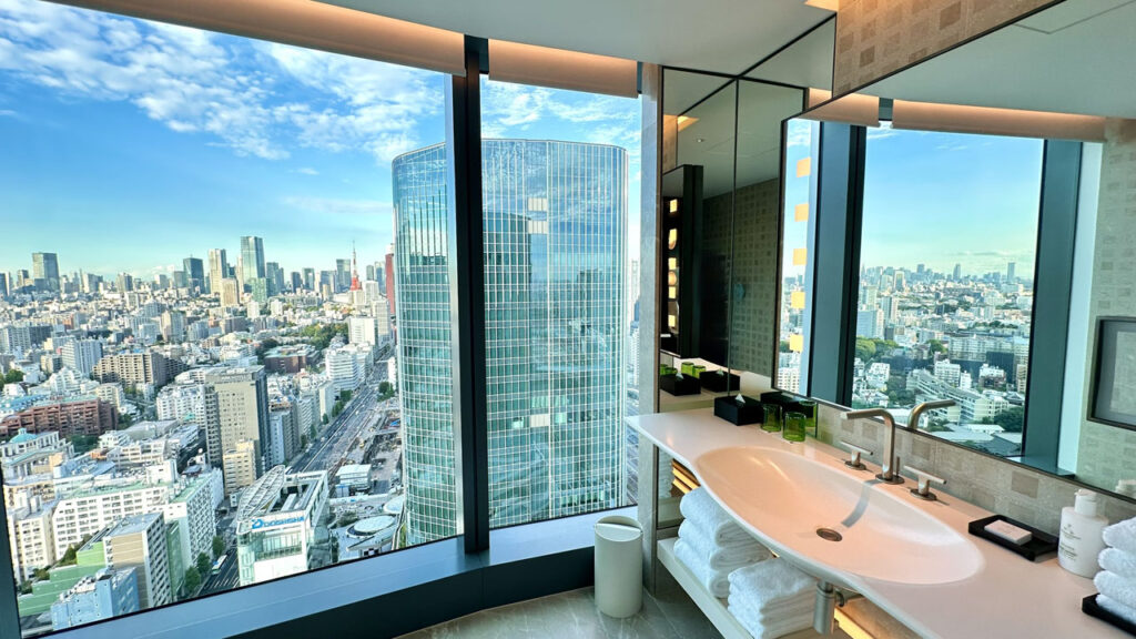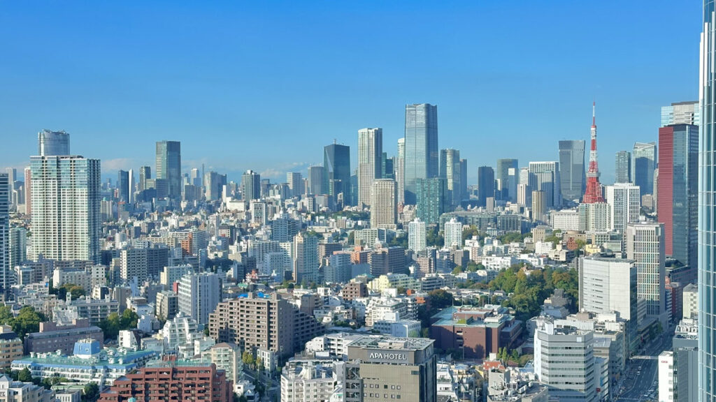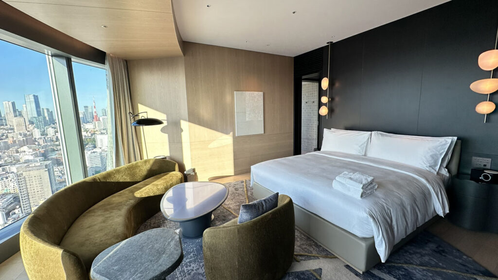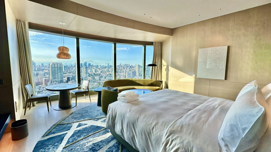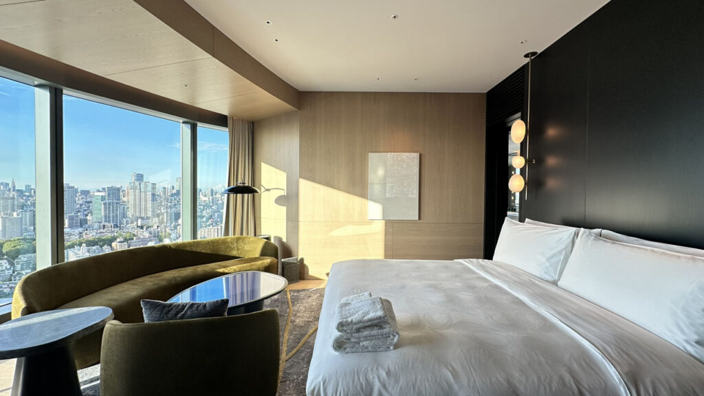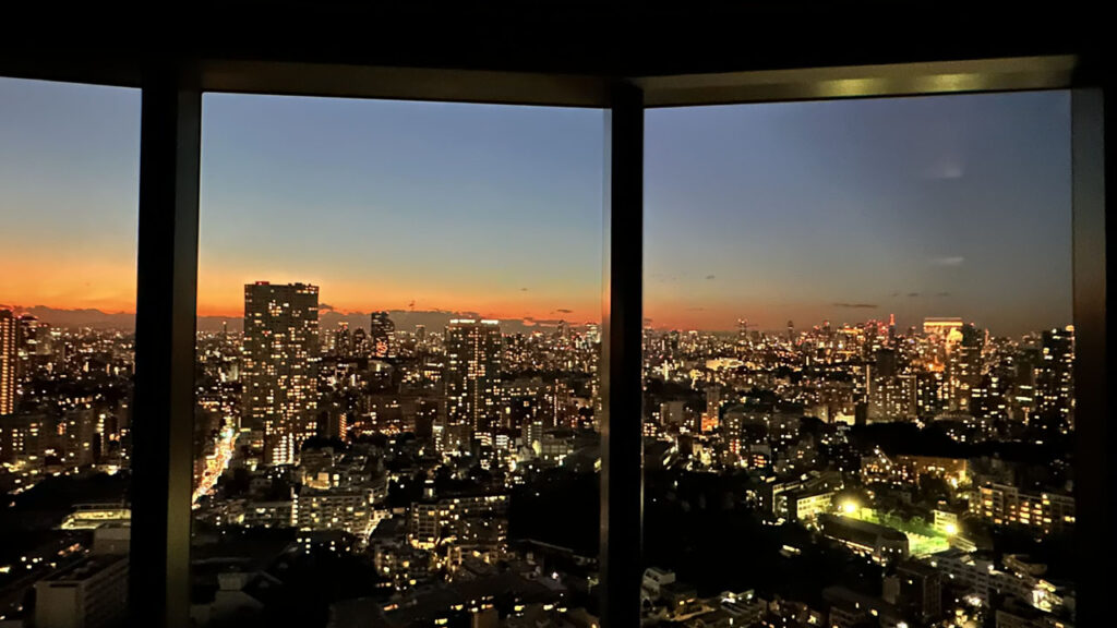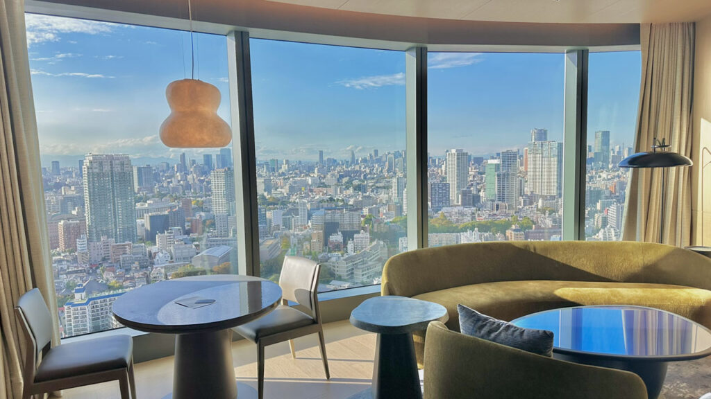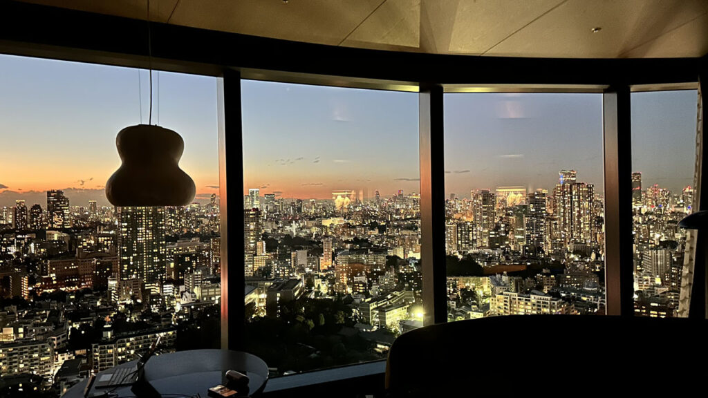 この部屋の良い点は、窓が天井から床まであり窓一面に広がる東京の絶景を見れること。そしてジュニアスイートは全てコーナールームになっているため、後ほど紹介するバスルーム・洗面台からも同じような絶景を見ることが出来ます。
