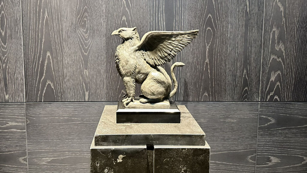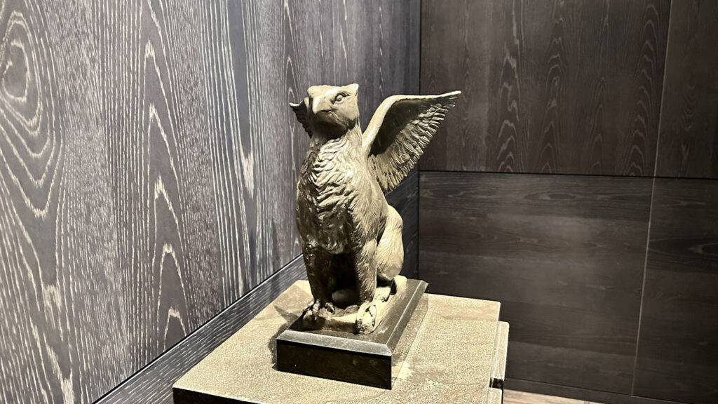 伝説上の生き物である「グリフィン」をモチーフにしたJWマリオットのロゴが石像になっていました。