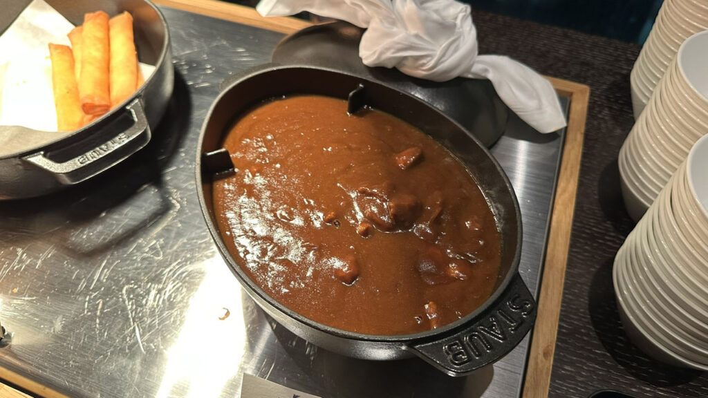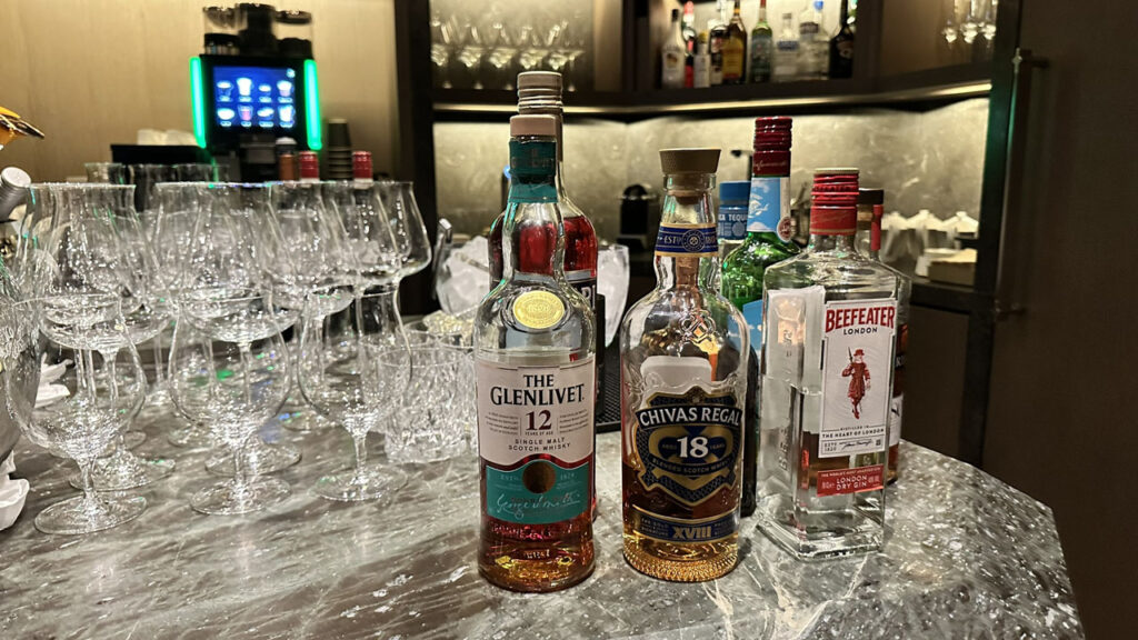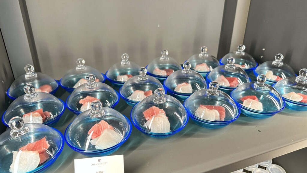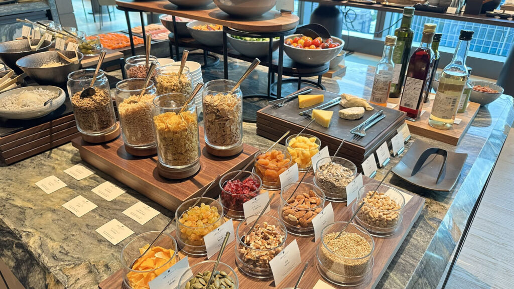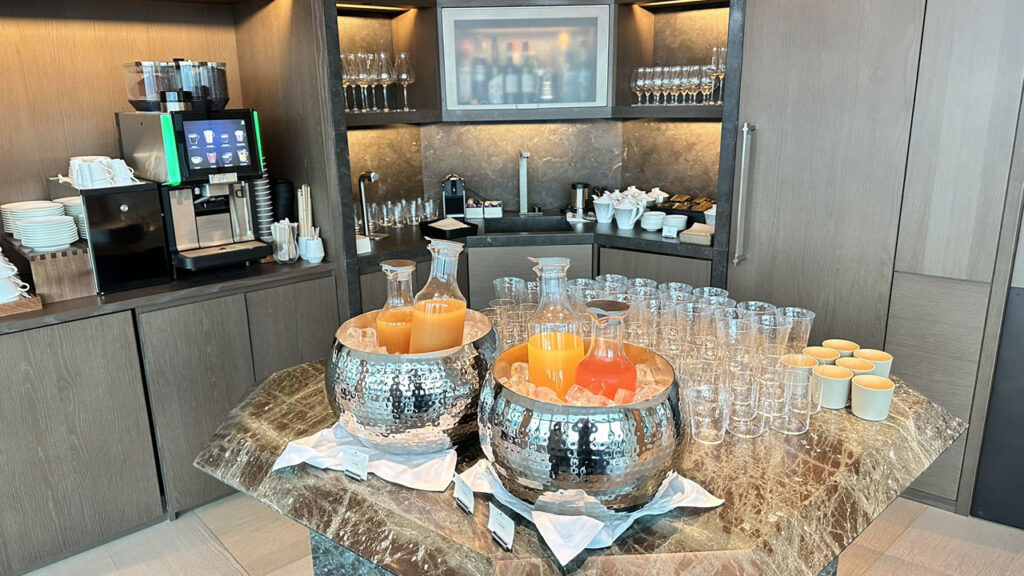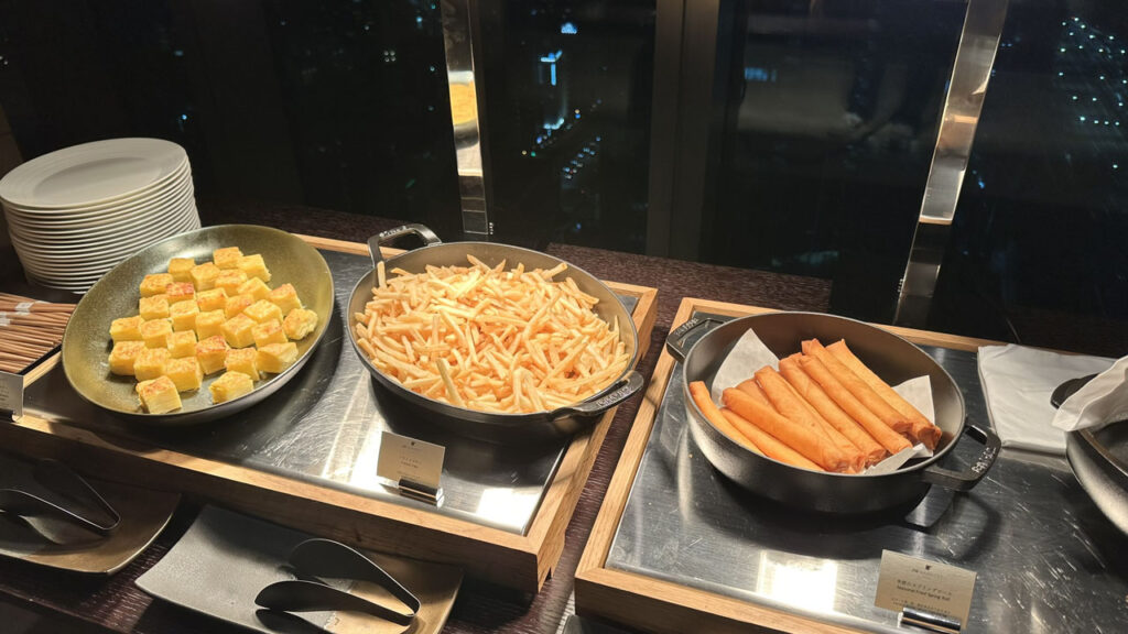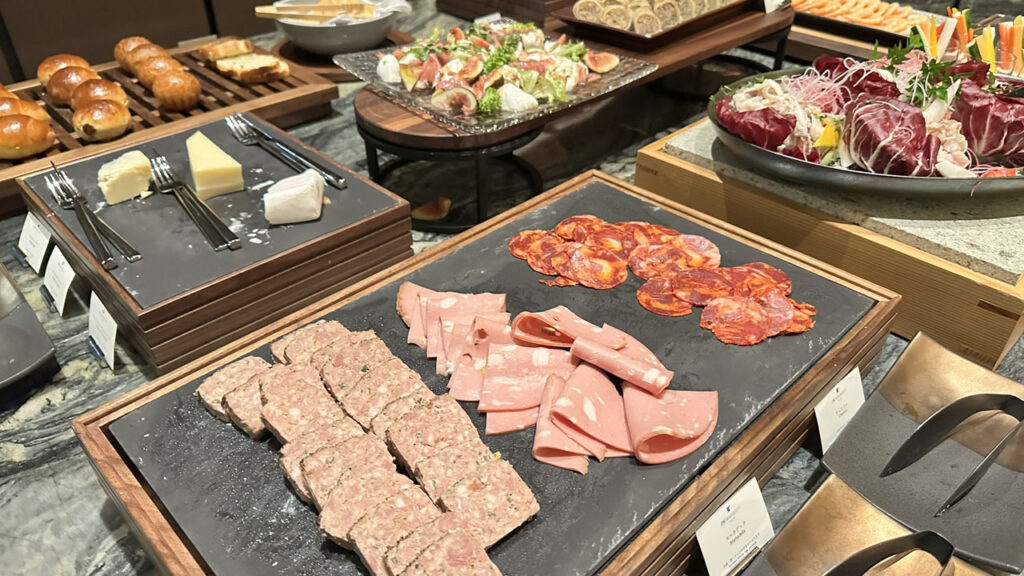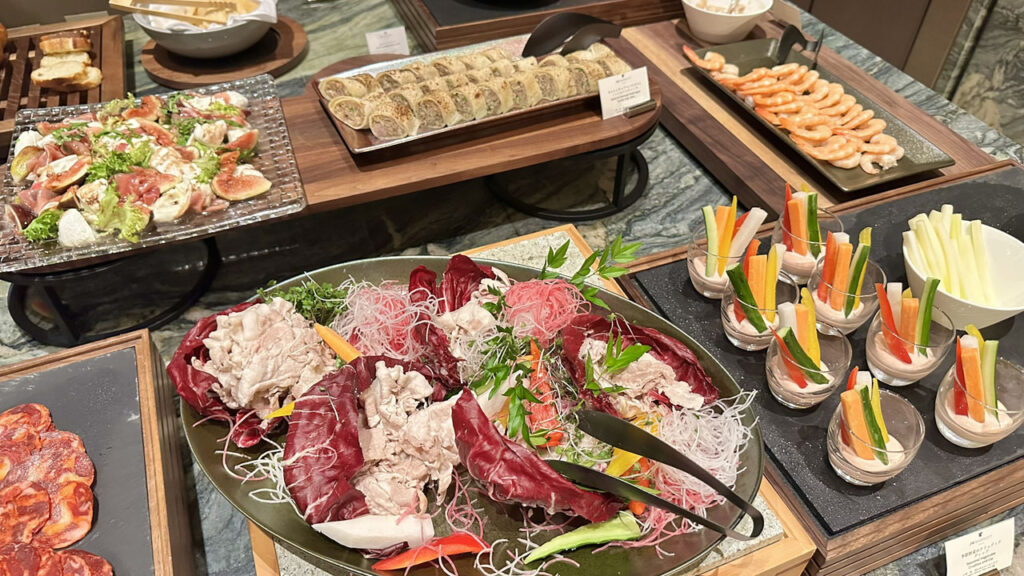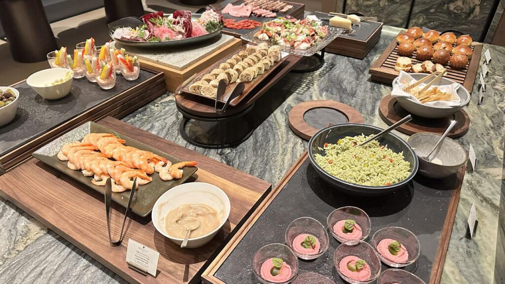 フードプレゼンテーションの料理が並ぶエリアは、エグゼクティブラウンジの中央にあります。