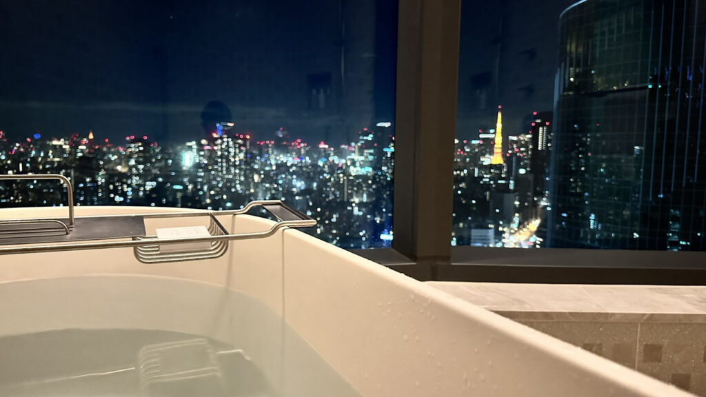 東京タワー側の夜景も最高です。このビューはバスタブに浸かりながら見ることができます。