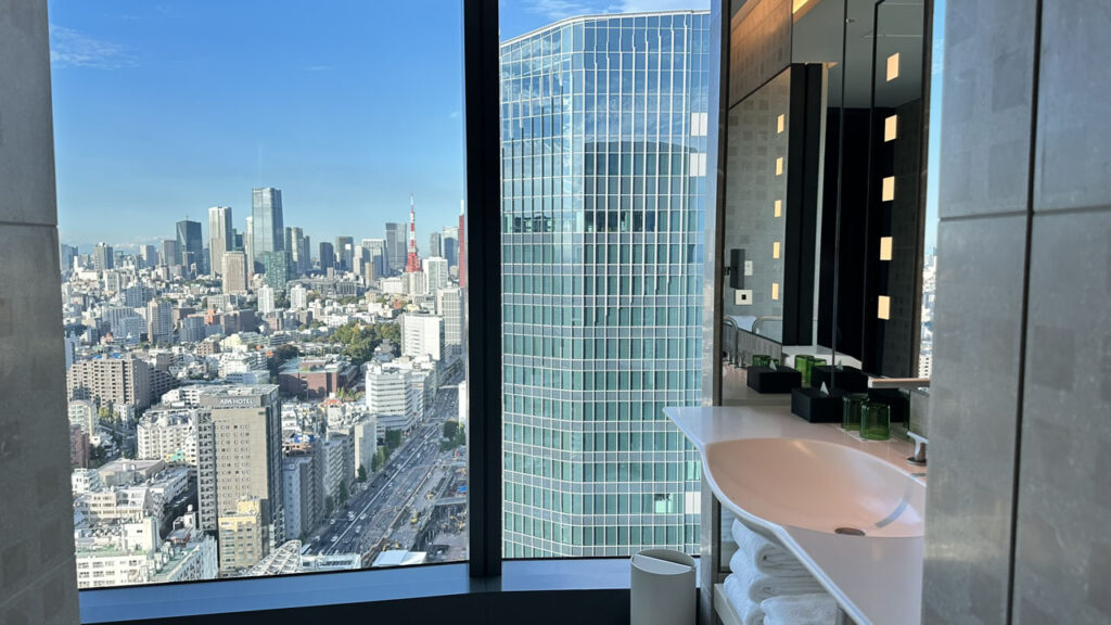 バスタブに浸かって眺める東京タワービューが最高でしたが、夜は目の前のビルから見えてしまうと思われるためカーテンを下ろすなどした方が良いので注意しましょう!おそらく昼間はガラスが反射して外からは見えにくはずです・・・