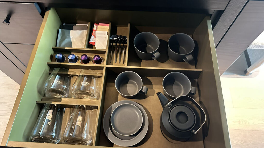 ミニバーや無料でいただけるコーヒー、紅茶、お水など