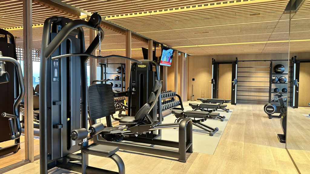 JWマリオット東京の28階にあるフィットネスエリアは、宿泊者が無料で24時間利用できる本格的なウェルネス空間です。大きな窓から自然光が差し込む開放的なジムには最新トレーニング機器が揃い、滞在中でも日常のコンディションづくりを無理なく続けられます。都会の眺望を楽しみながら体を動かす時間は、心まで軽くしてくれる特別な体験です。