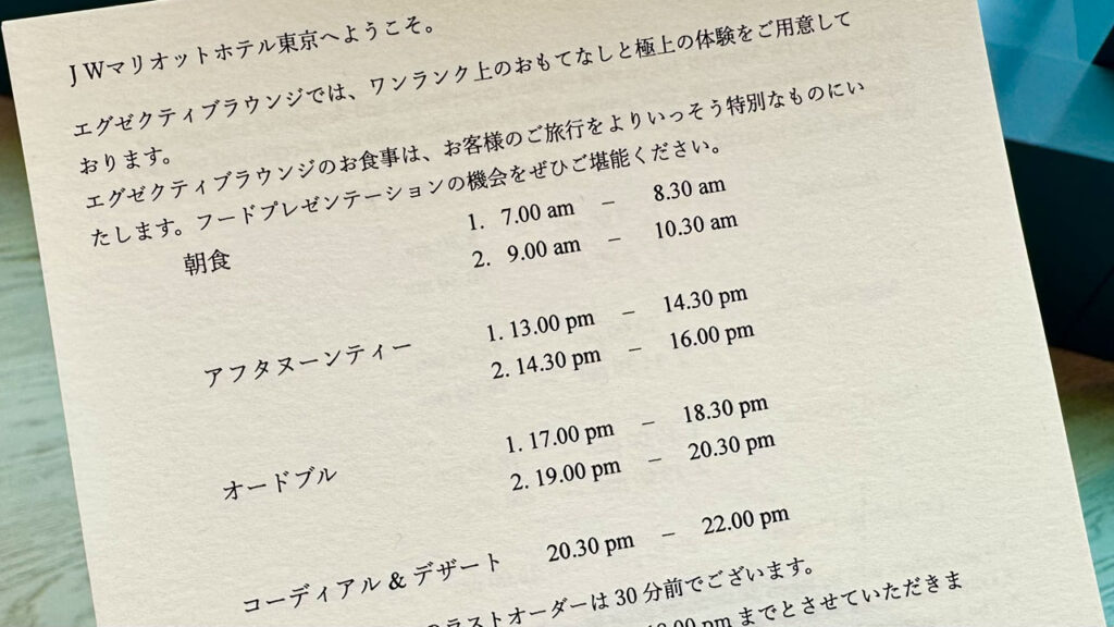 JWマリオット東京のエグゼクティブラウンジについての詳細はこの記事の後半で解説