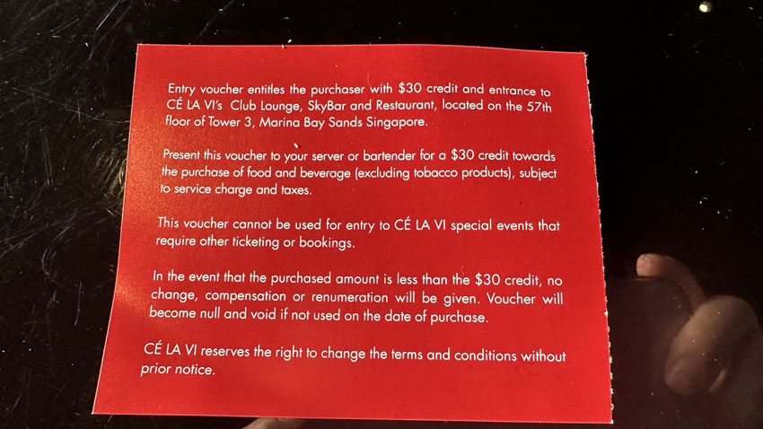 この35SGDはCÉ LA VI(セルヴィ)で飲食するための前払いですので無駄にはなりません。