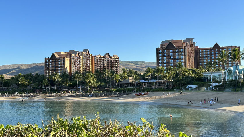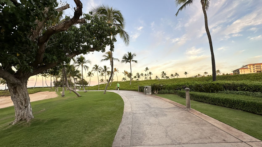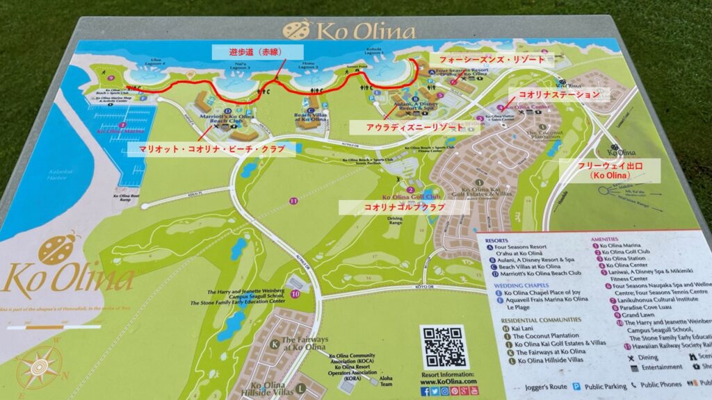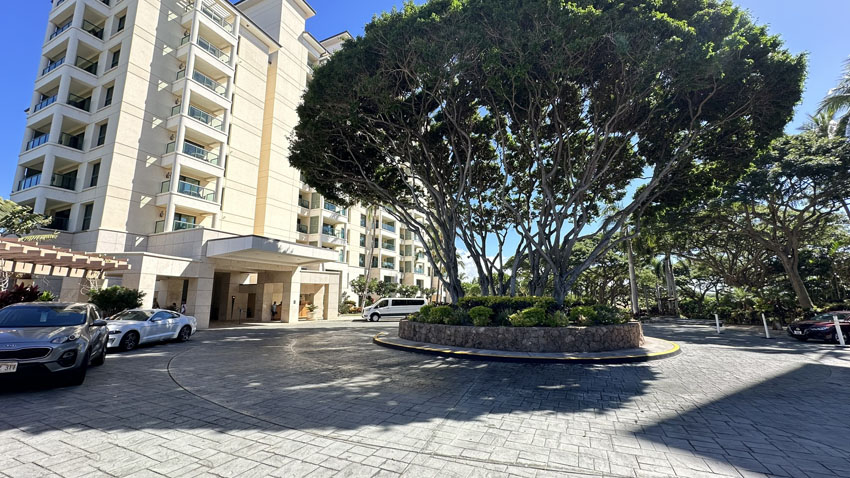 - そこから400メートルほどすすむと、右手にフォーシーズンズホテル ⇒ アウラディズニーリゾート ⇒ マリオット・コオリナ・ビーチ・クラブの順に見えてきます。