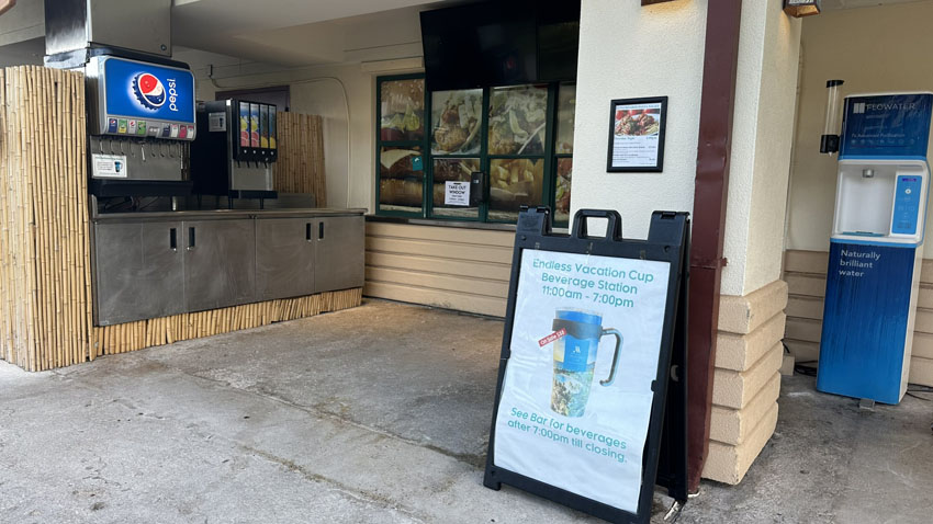 上の写真は、ロングボードレストラン・テイクアウト窓口です。一番右側に写っているのがウォーターサーバーです。