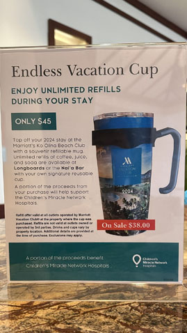 「Endless Vacation Cup」とは、一度、購入するとコオリナ・コオリナ・ビーチ・クラブに滞在中に、ソフトドリンクがフリーになるステンレス製のマグカップです。