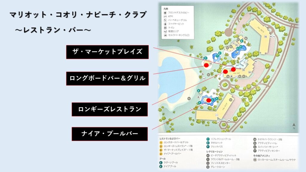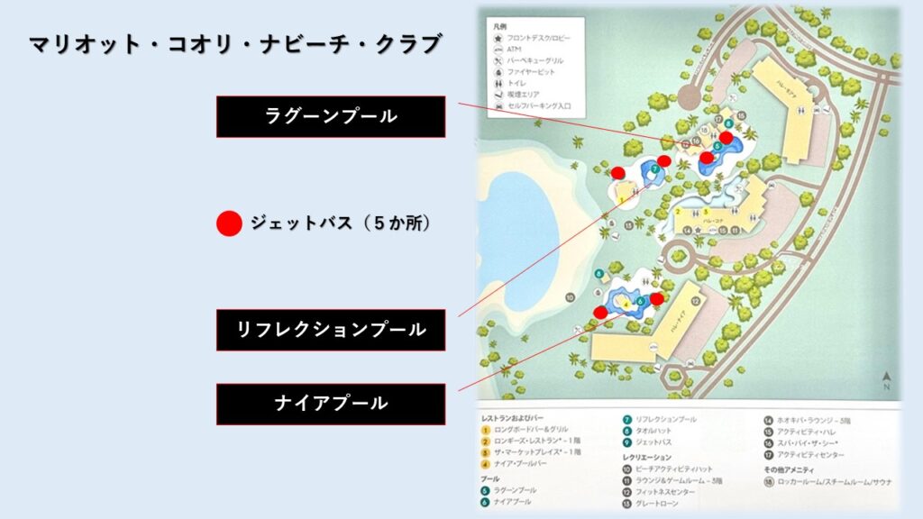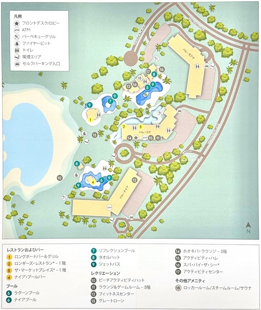 エントランスやレセプションは以下MAPの真ん中にある「ハレ・コナ棟」にあります。
