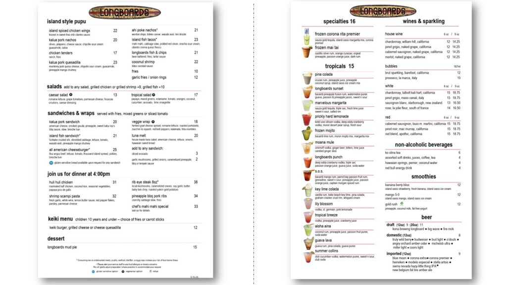 ロングボード・バー&グリル(Longboards Bar &グリル)は、マリオット・コオリナ・ビーチ・クラブ内にあるオーシャンフロントのレストランです。