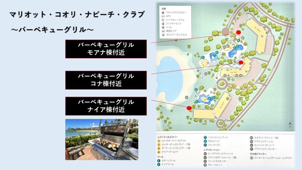 ここはビーチが近いので青い海と空を見ながらのバーベキューが最高です!