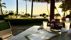 特に夕暮れ時、絶景のサンセットを見ながらの食事がおススメ。