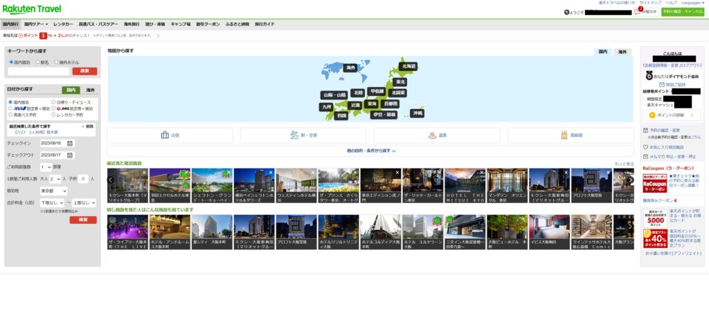 楽天トラベルを上手く活用して楽天ポイントを貯めたり、割引クーポンを活用することが、お得ホテルステイの重要な要素となります。