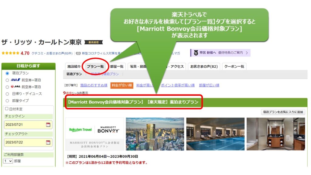 マリオット系ホテルの予約を楽天トラベルで得する条件