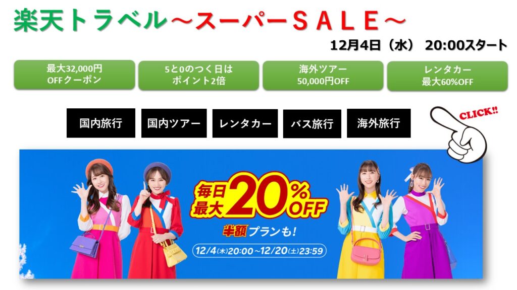 楽天トラベルの主なキャンペーン・クーポン・特集 エントリー 毎月5と0のつく日はホテル・宿が最大20%OFF 先着でクーポンGET 不要 毎月5と0のつく日は最高級宿が最大22%OFF 先着でクーポンGET 不要 海外旅行はじめて利用で5,000ポイント はじめて海外旅行利用で5,000ポイント 必須 全国旅行支援キャンペーン 最大35%OFF 不要 楽天カード会員限定1,000円割引クーポン 毎月配布・先着でクーポンGET 不要 直前予約でポイント15倍 毎月開催 必須 レンタカーで使えるお得なクーポン 随時開催 クーポンGETでお得にレンタカー 必須 バス旅行クーポン 随時開催 クーポンGETでお得にバス旅行 必須 東京ディズニーリゾートへ出発・到着のバスクーポン 東京ディズニーリート到着・出発の高速バスお得なクーポン 不要 楽天市場のキャンペーン