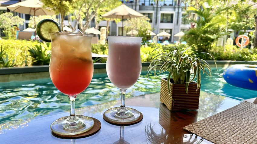 プールで泳いでいる人より、プールの周りのビーチチェアで昼寝をしたり本を読んだりしながら、のんびり過ごす人の方が多かったです。