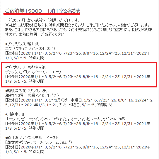先日、プリンスポイントの宿泊券2021年版が公表されましたが、なんとデラックスフロアスイート(73.8㎡)に15,000ポイントで宿泊することができるようです。