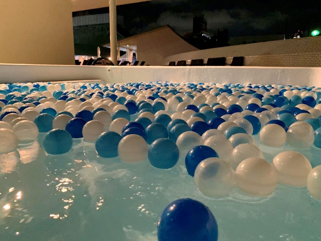 女性用ロッカーの横にひっそりとイマドキ写真用と思われるスペースが…小さなプールにカラーボールが大量に投入された場所がありました。
