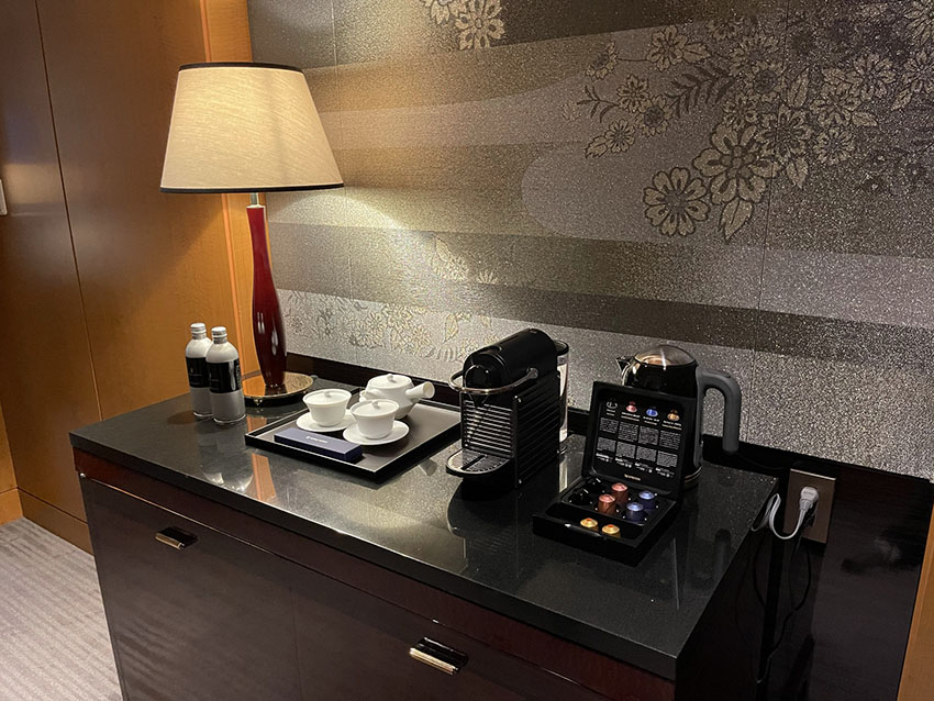 ミニバーや冷蔵庫、無料で飲めるコーヒー・紅茶は客室に入ってすぐのところになります。