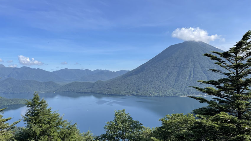 天気の良い日は、中禅寺湖と男体山の絶景を見ることができます。