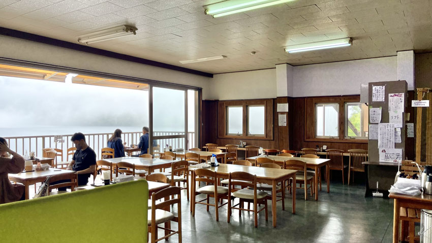 店内の窓際の席やテラス席からは、目の前に中禅寺湖と男体山が見えるので、奥日光の自然豊かなビューを眺めながら食事&カフェを楽しめます。