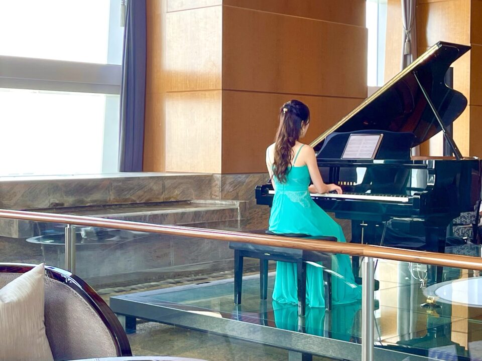 時間帯によってはピアノの生演奏を聴きながら贅沢な時間を過ごせます。