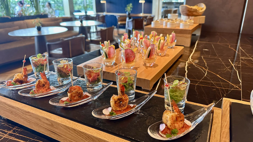クラブラウンジを利用するには、クラブラウンジアクセス付で予約する必要があり宿泊料金は高くなりますが、滞在中はレベルの高い5回のフードプレゼンテーションがあり、シャンパンを含むアルコールも飲み放題です。
