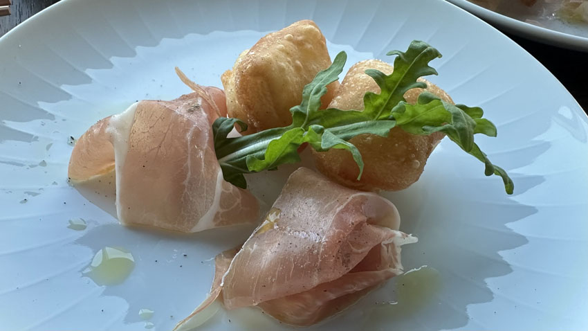 上の写真は日替わりメニューで提供される特選料理の生ハムです