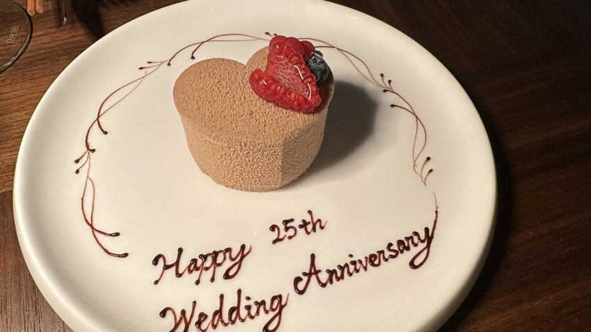 2023年は私達夫婦の結婚25周年だったので、メッセージ入りのサプライズケーキをいただきました。