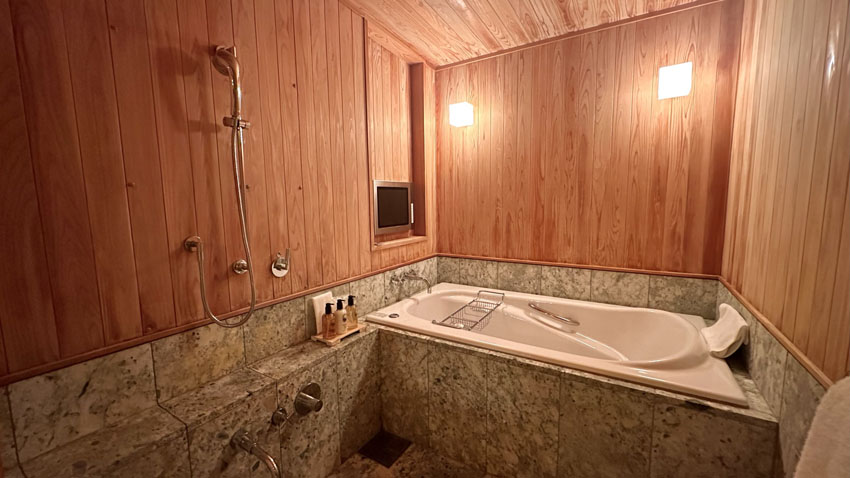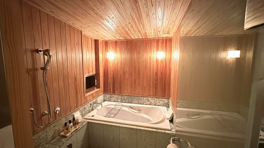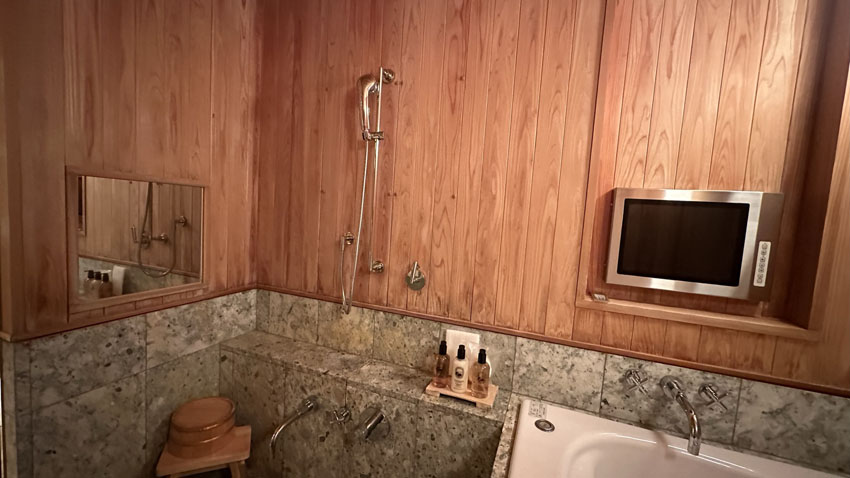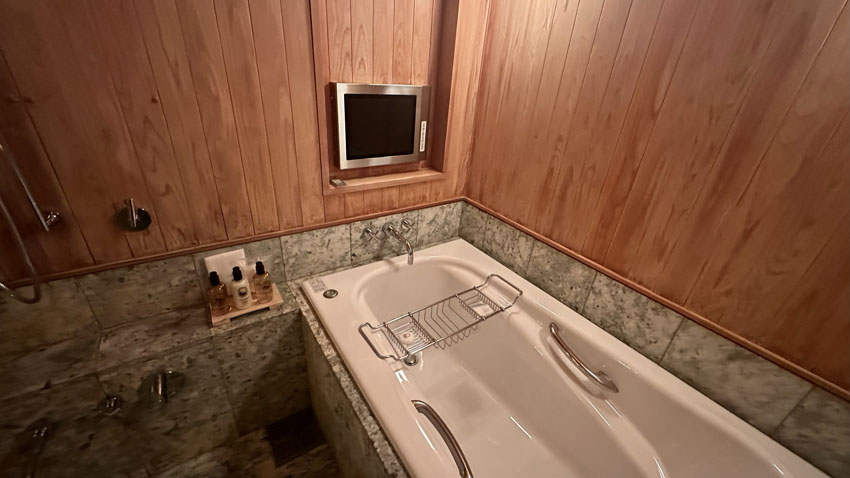 浴槽の前にはテレビも設置されているので、ここでテレビを見ながらゆっくり疲れを癒すことができます。