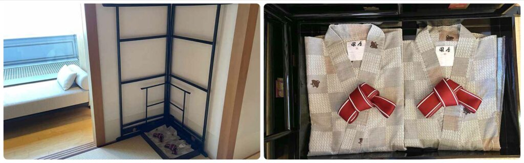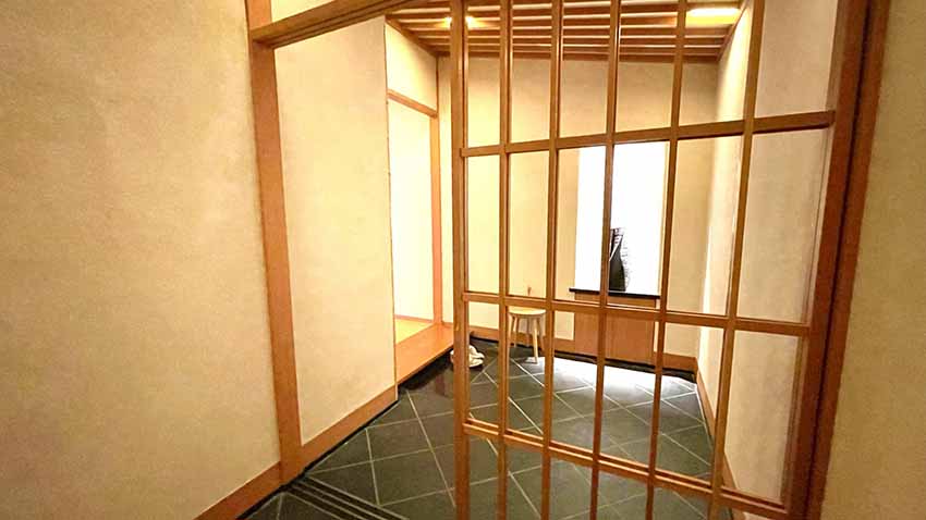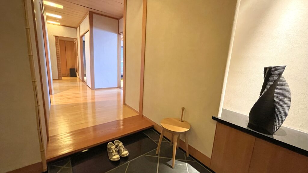 モダンジャパニーズスイートは、畳の客室なのでエントランスで靴を脱ぐため、とても斬新でした。