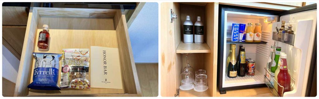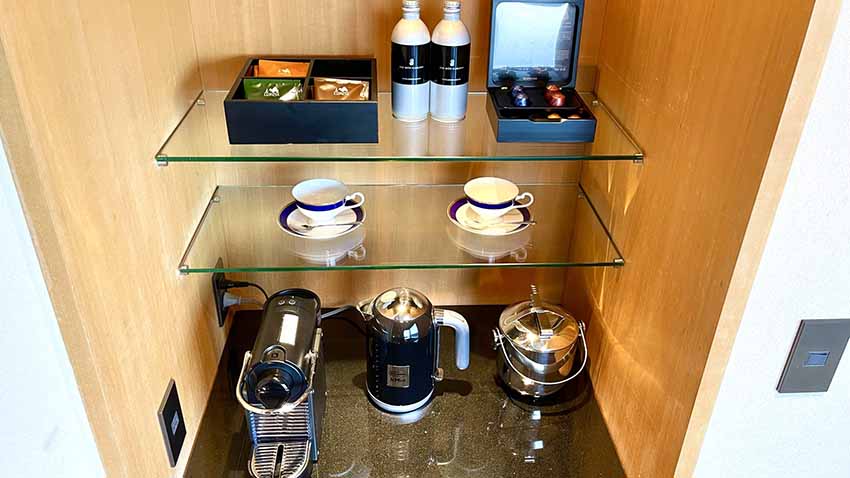 ミニバーや無料でいただけるお茶やコーヒーは、リッツカールトン東京の他の客室と変わりありません。