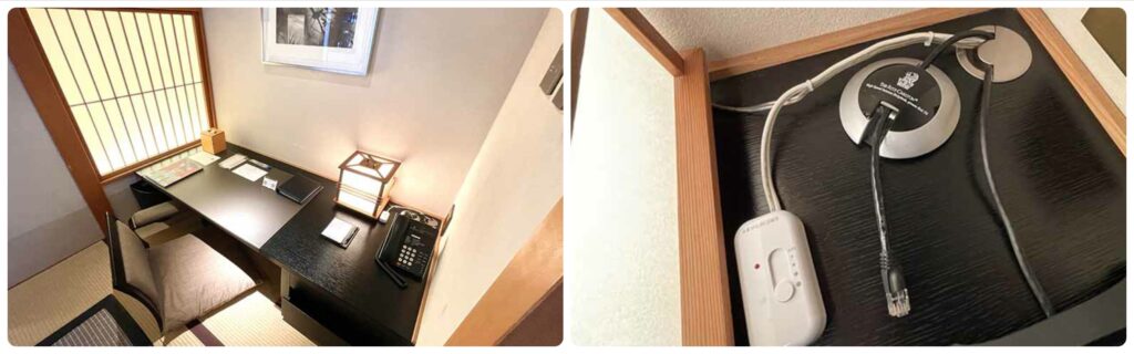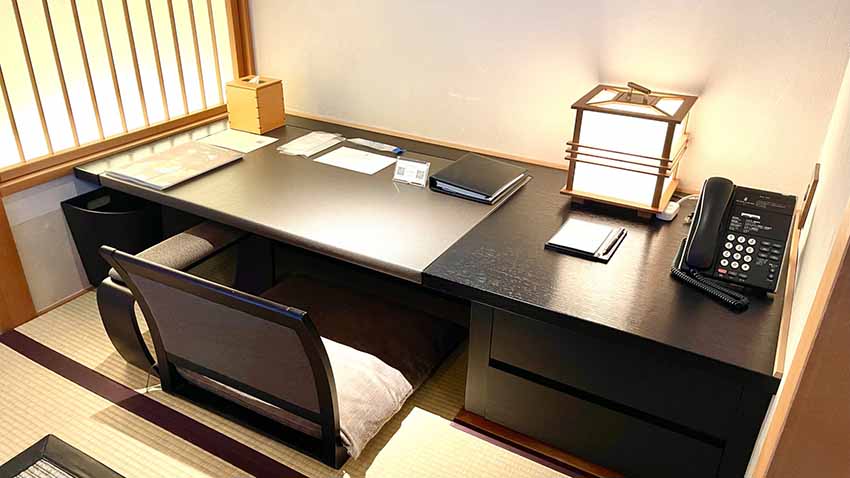 リッツカールトン東京の他の客室のビジネスデスクとは異なり座椅子に座るタイプになっています。