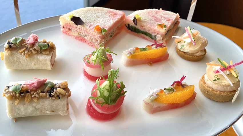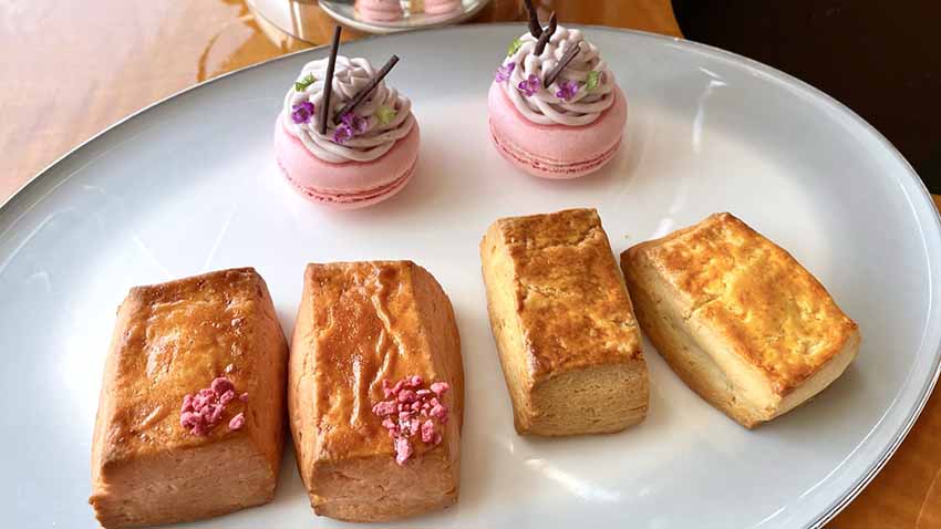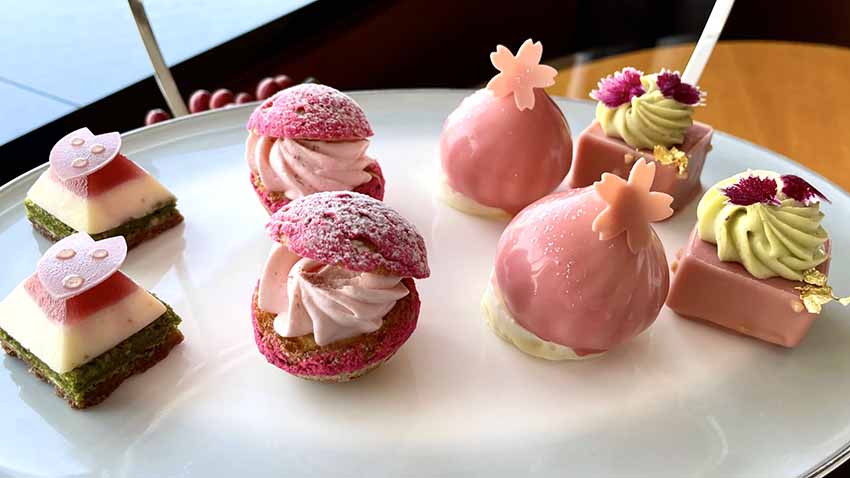 2日目の午後に2022年3月15日(火)~4月30日(土)に日本の春をテーマに提供されていた『桜アフターヌーンティ(6,200円)』をいただきました。