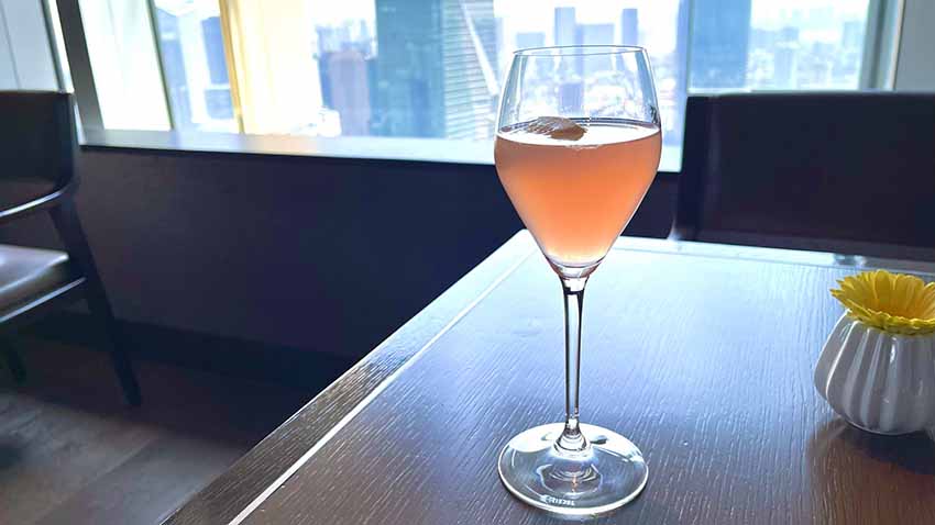 写真はノンアルコールの「さくらのシロップとグレープフルーツジュース」