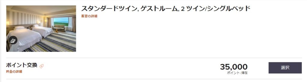 シェラトン・グランデ・オーシャンリゾートはマリオットボンヴォイのカテゴリーは「5」となりますので、1泊1室の宿泊ポイントは35,000ポイントとなります。