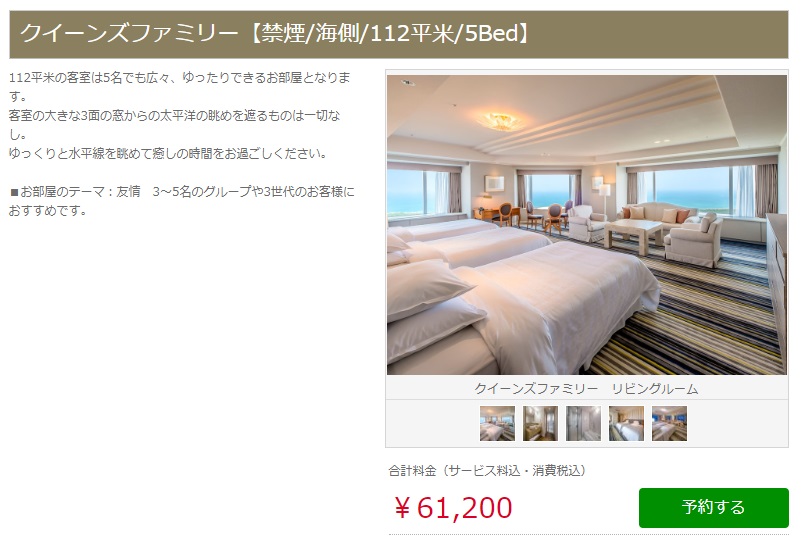 そして、今回、プラチナ特典でアップグレードして頂いた『クイーンズファミリー』の1泊1室の料金は、61,200円でした。